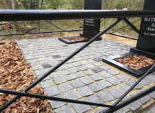 После создания основания мы покрыли территорию места захоронения гранитной брусчаткой, параллельно с этим установив заранее изготовленные памятники и цветники. Затем вернули на место металлическое ограждение и засыпали цветники и площадь перед брусчаткой корой. Этап работ на снимках не отображён, однако на приведённых ниже фото отлично виден итоговый результат.